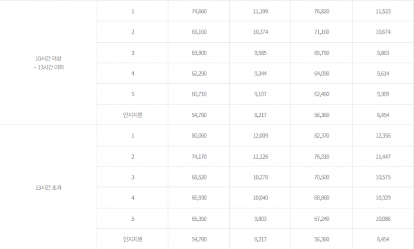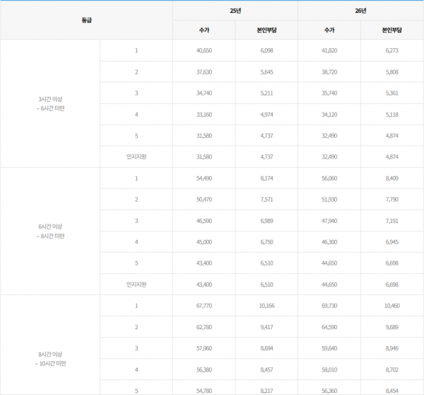 ※ 방문요양의 1회당 이용시간별 급여비용(월)