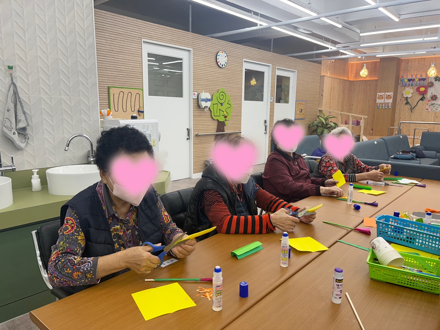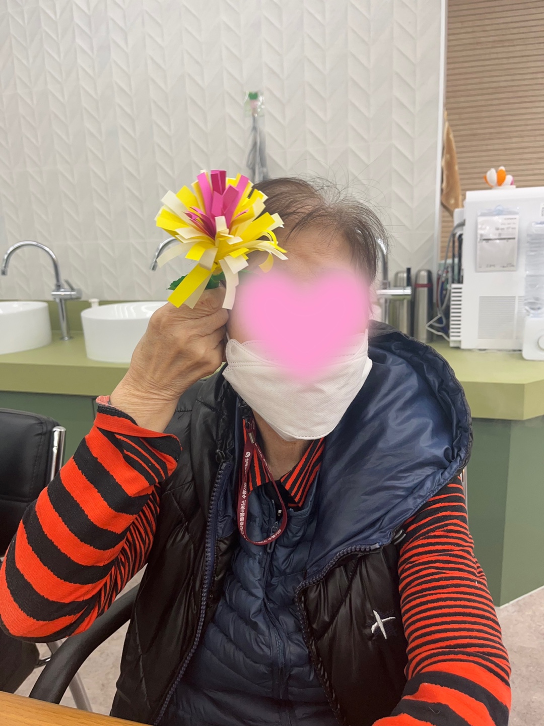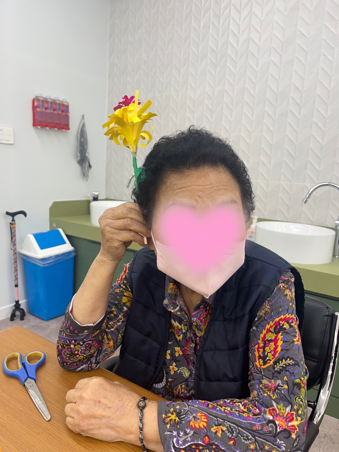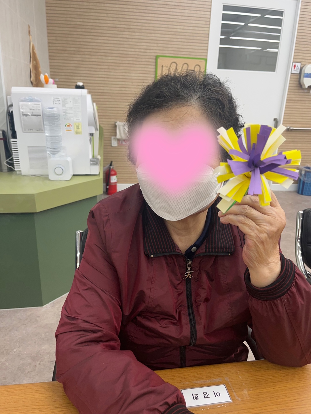 색종이를 이용하여 어르신께서 국화를 만드시는 시간을