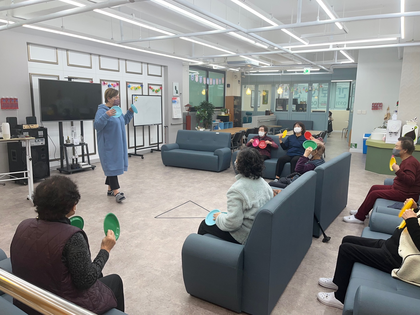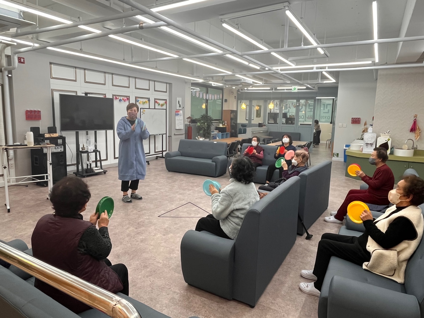 자격증을 소지한 강사님이 오셔서 어르신과 함께 웃고 땀흘리시며