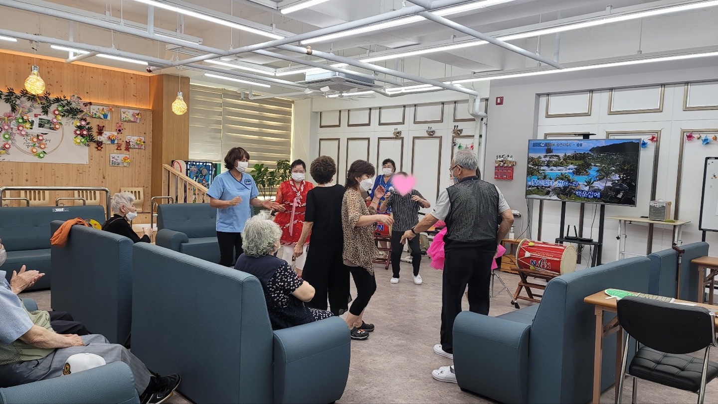 우리 센터 어르신 모두 일어나셔서 춤도 추시고