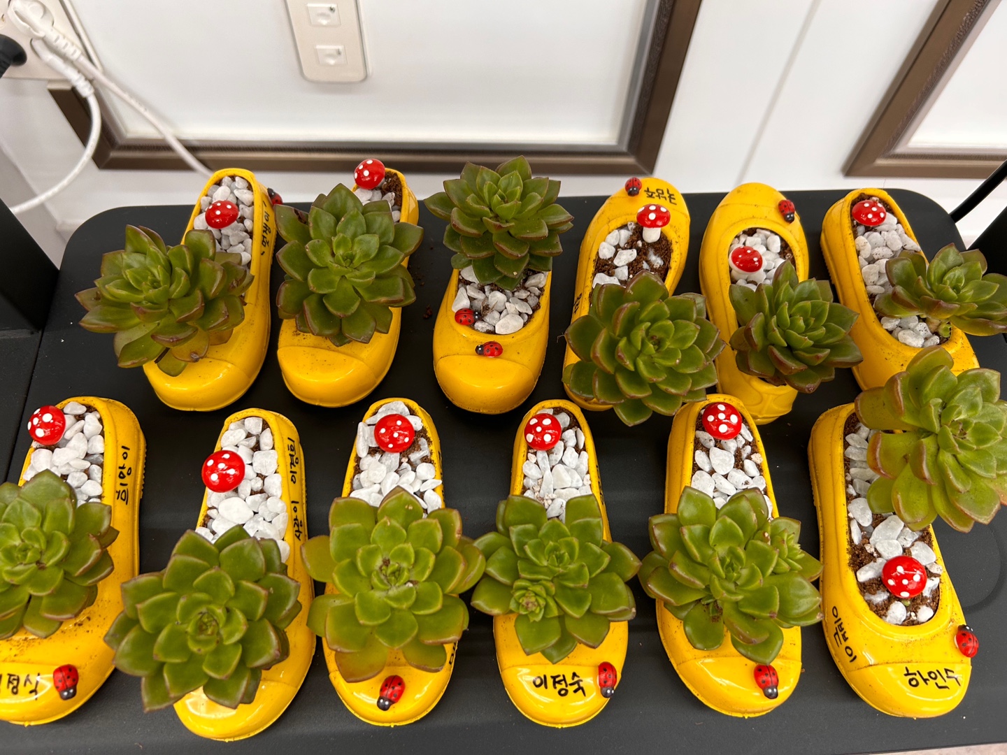 귀여운 고무신 안에 다육이를 넣고 흙도 직접