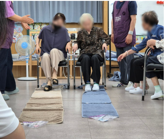 안녕하세요~ 어르신들의 웃음과 활력을 함께하는 좋은노인주간보호 센터입니다. 오늘 소개해 드릴 신체활동은 "수건 릴레이" 입니다.