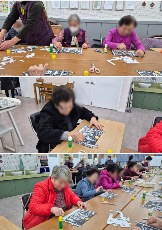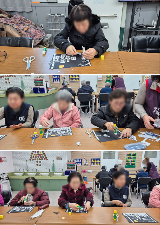 어르신들의 손끝에서 눈송이 하나하나가 쌓여가며 아름다운 겨울밤 풍경이 완성되어 갔어요!