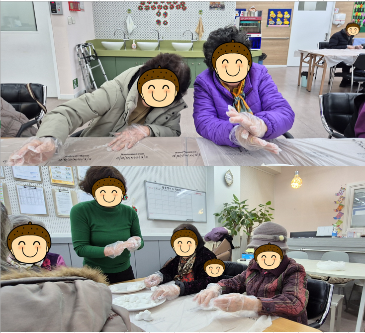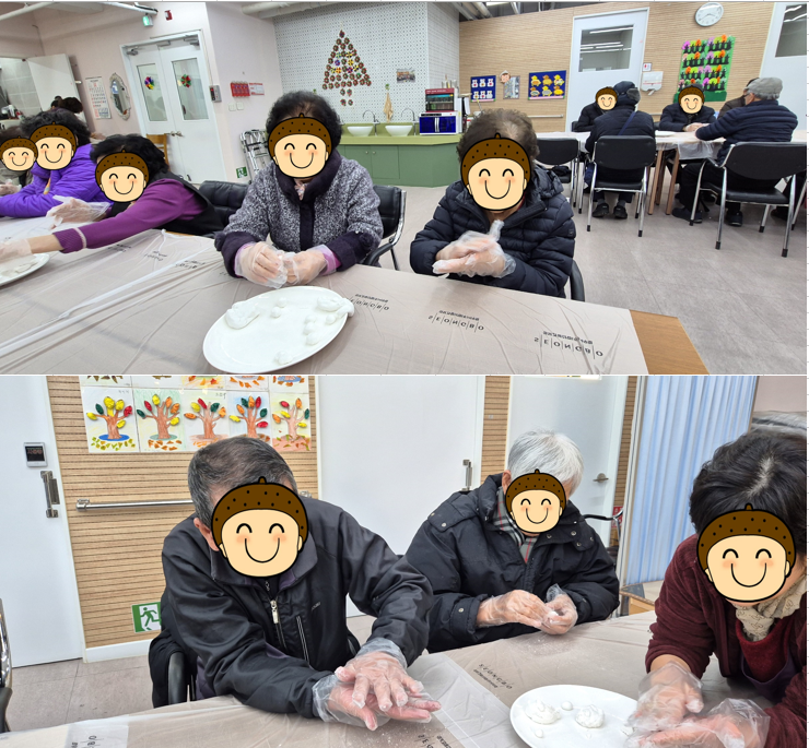 "말랑말랑하네~" "옛날생각나네~" 하시며 어르신들은 정성껏 새알심을 만들어 주셨습니다.