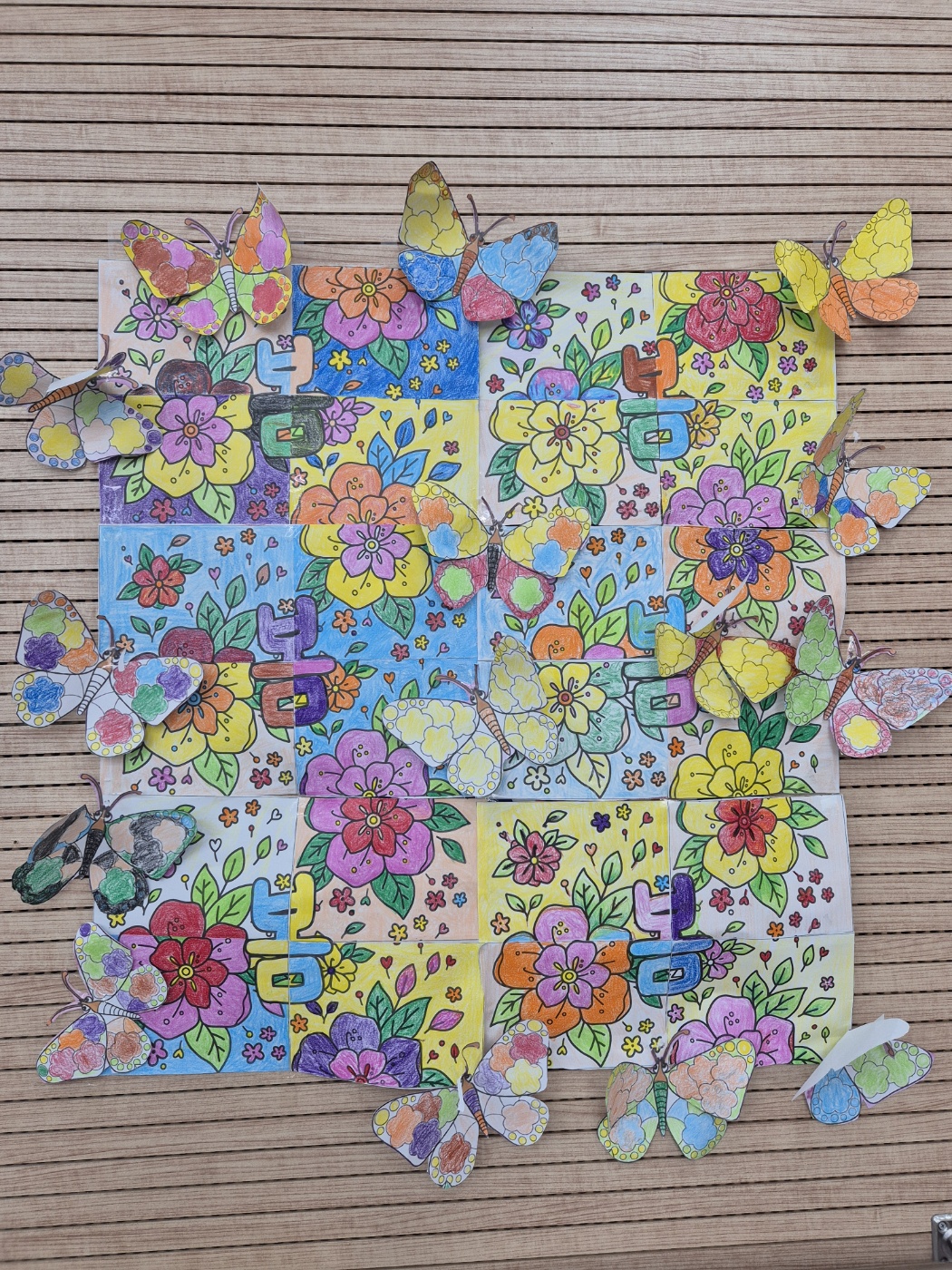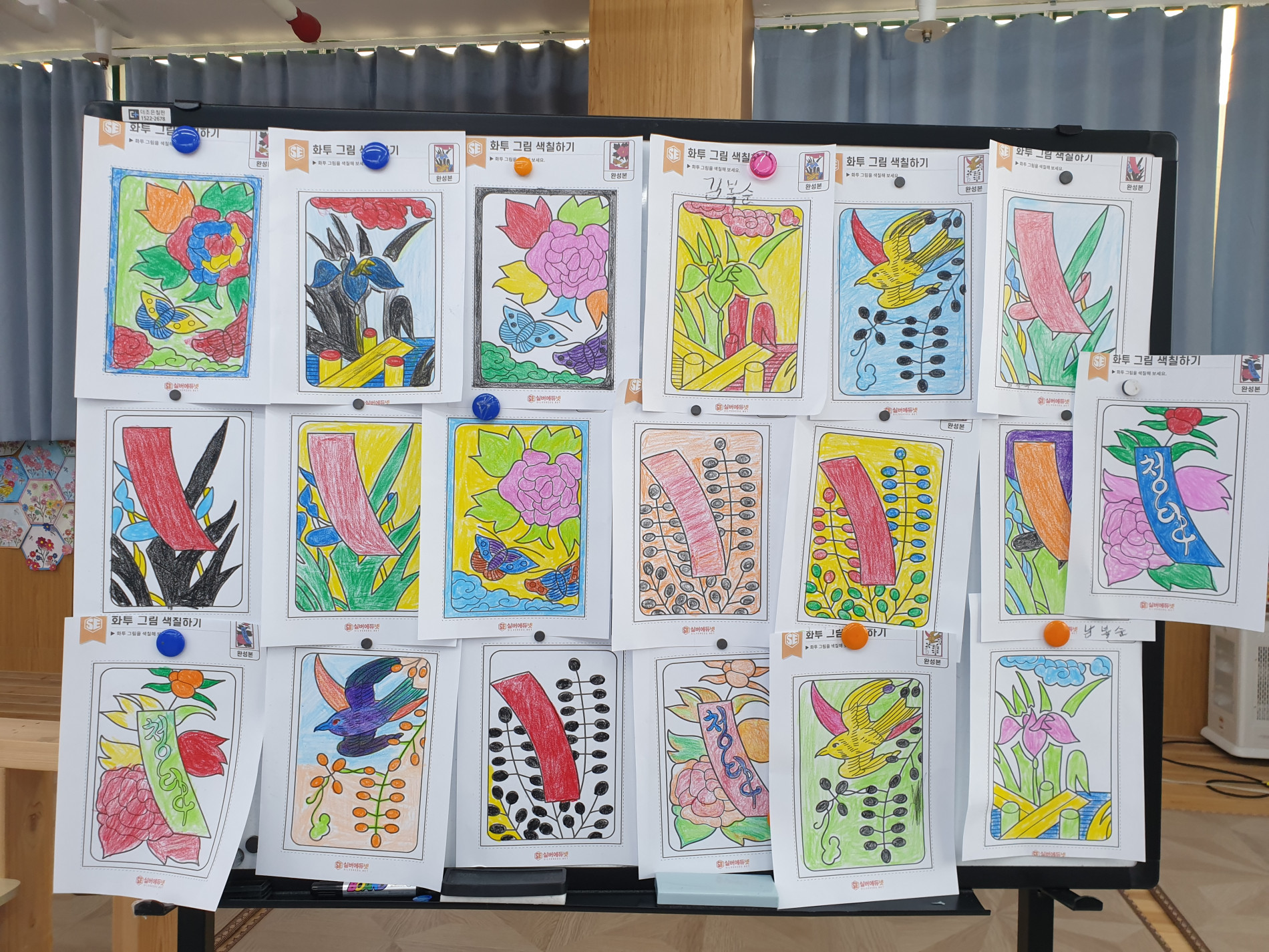 어르신들이 색을 칠해주시면 각각의 그림을 모아서 공동의 작품으로 만들어 보았습니다.