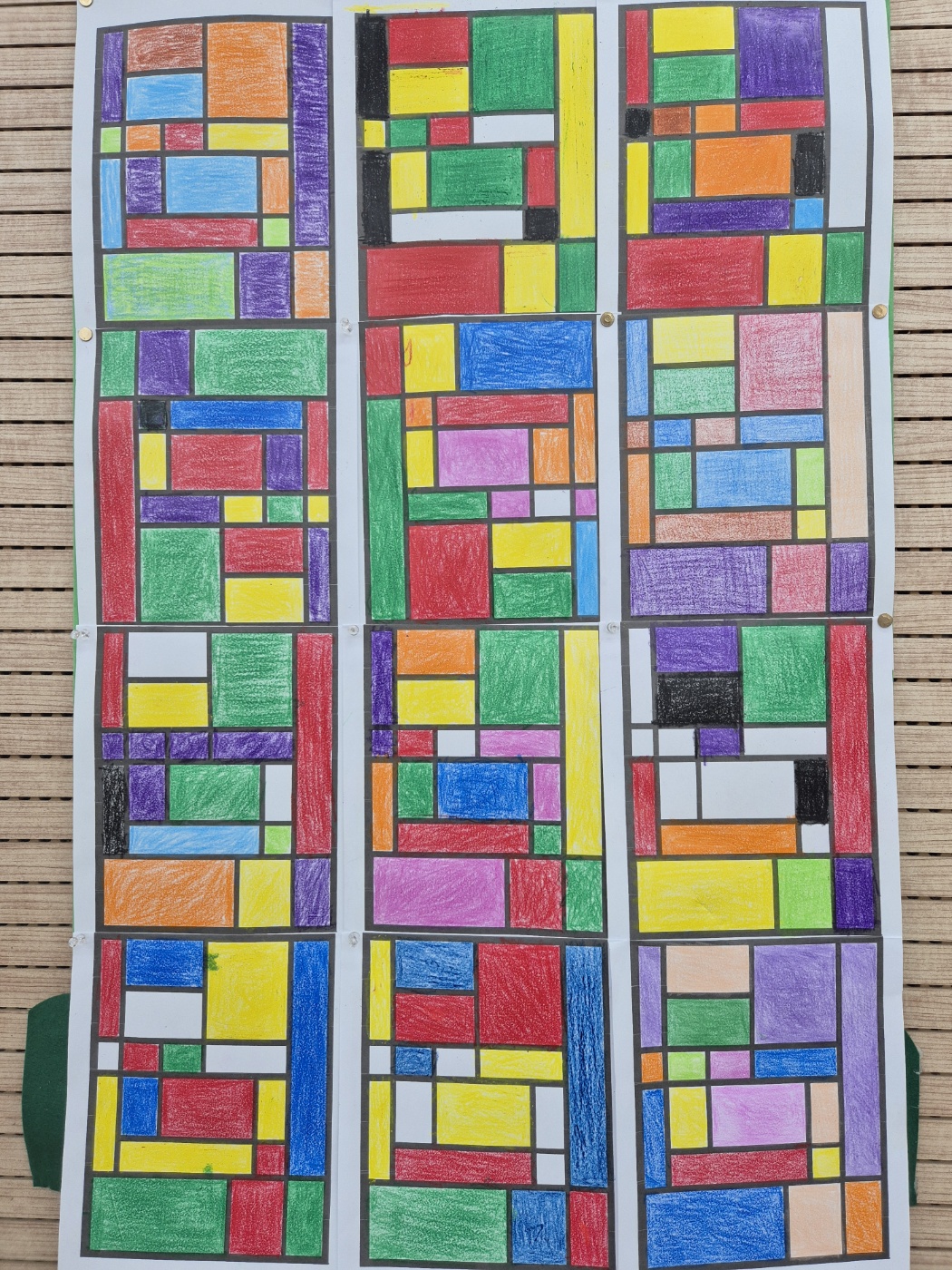 몬드리안의 작품을 모티브로 스테인드 글라스처럼 이어 붙인 작품과