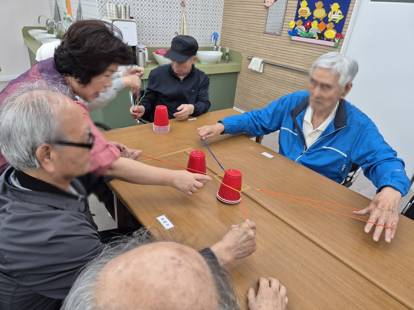 이번 활동은 고무줄과 컵을 활용한 협동게임을 해보았습니다.