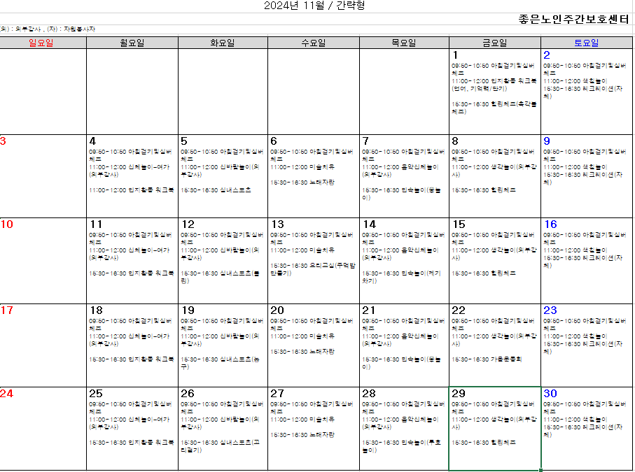11월 프로그램 페이지 정보 작성자 최고관리자 작성일 24-11-01 21:15 조회 232회 댓글 0건 본문 11월 프로그램 일정 올려드립니다 이전글12월프로그램 다음글10월 프로그램계획표 목록 댓글목록 0 댓글목록 등록된 댓글이 없습니다.