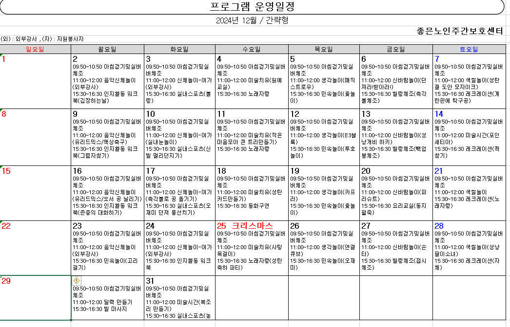 12월프로그램 페이지 정보 작성자 최고관리자 작성일 25-01-01 16:41 조회 218회 댓글 0건 본문 12월프로그램 올립니다 이전글2025년1월프로그램 다음글11월 프로그램 목록 댓글목록 0 댓글목록 등록된 댓글이 없습니다.
