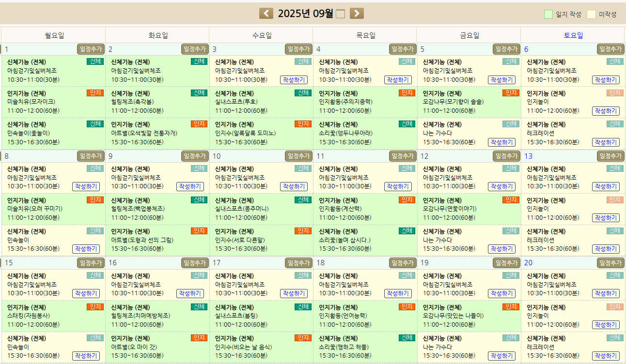 2025년 9월 프로그램 계획표 입니다. 페이지 정보 작성자 최고관리자 작성일 25-09-01 18:01 조회 119회 댓글 0건 본문 2025년 9월 프로그램 일정입니다. 이전글2025년 10월 프로그램 계획표입니다. 다음글2025년 8월 프로그램 계획표입니다. 목록 댓글목록 0 댓글목록 등록된 댓글이 없습니다.