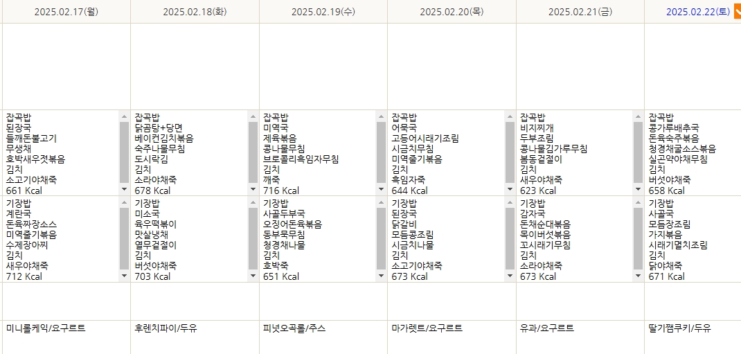 2월 17일 ~ 22일 식단표입니다. 페이지 정보 작성자 최고관리자 작성일 25-02-17 16:01 조회 288회 댓글 0건 본문 2월 2째주 식단표입니다. 이전글2월24일~2월 28일 식단표입니다. 다음글2025년 2월 2일 ~ 8일 식단표 목록 댓글목록 0 댓글목록 등록된 댓글이 없습니다.