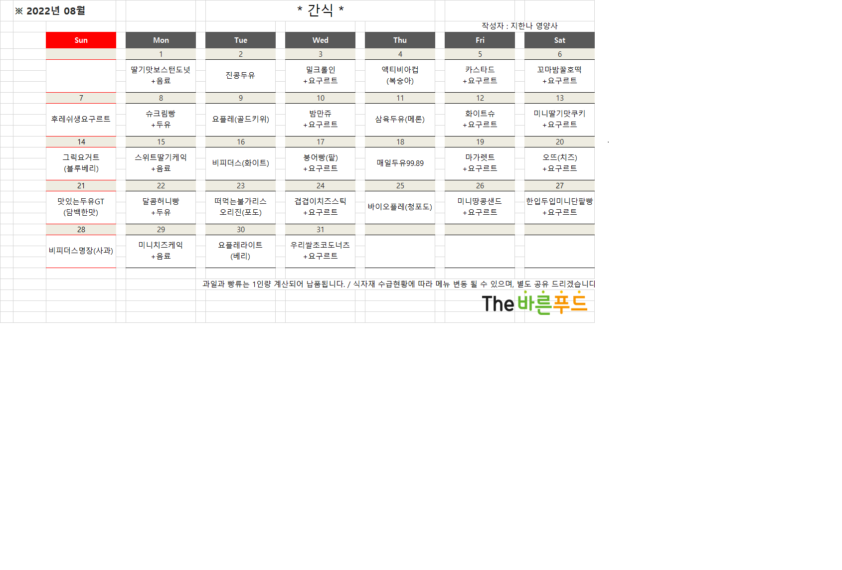 *** 8월 맛있는 간식메뉴입니다~ *^^*