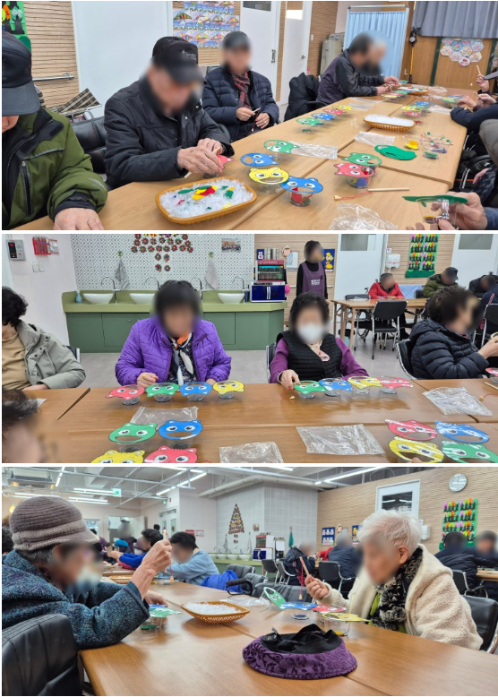 행복한 좋은노인주간보호센터입니다. 요즘 날씨가 참 쌀쌀해졌죠? 날씨가 추워져 자꾸 움츠러들기도 하는데요~ 오히려 이럴 때 어깨도 한번 굴려주시고 다리도 한번 높이 올려보면서 몸을 부드럽게 풀어주시면 좋을 것 같습니다. 오늘은 겨울철 놀이에 대해 얘기하면서 특히 얼음에 동그란 구멍을 내고 산천어와 빙어를 잡는 얼음 낚시에 대해 어르신들과 이야기를 나누어 보았어요