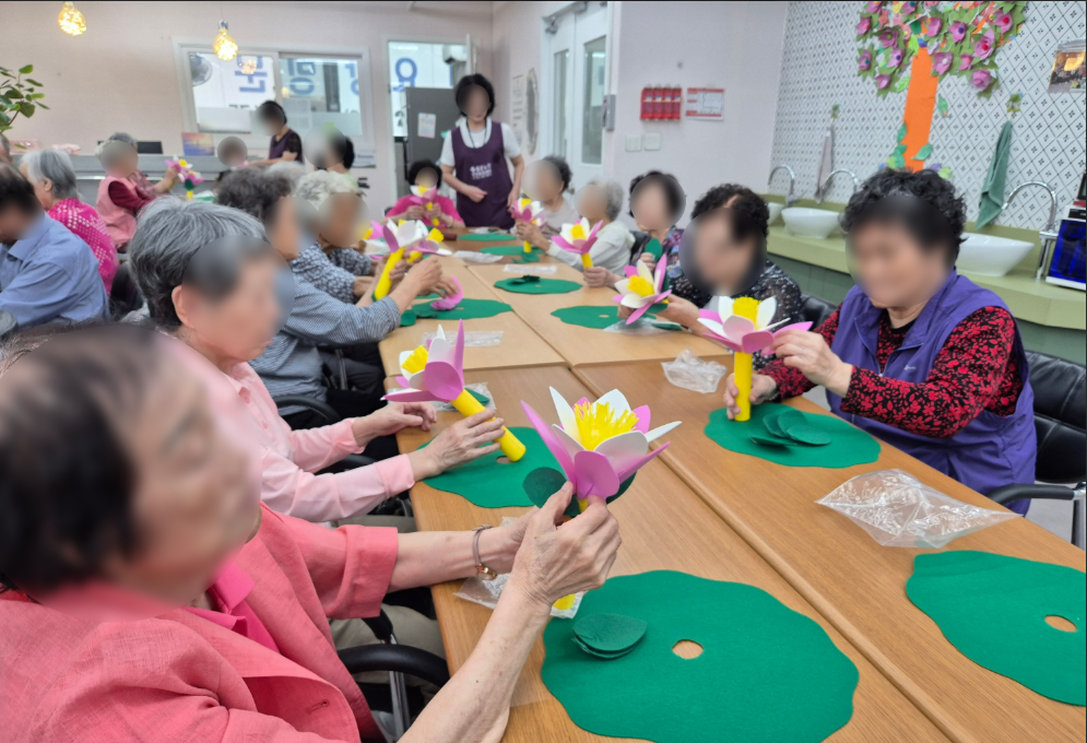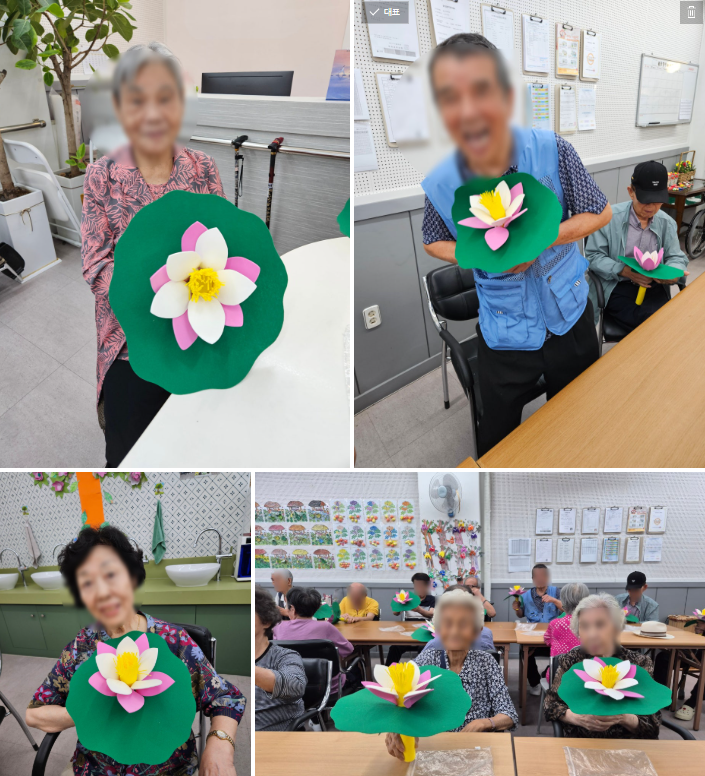 오늘은 어르신들과 전래동화 "효녀 심청"에 등장하는 연꽃에 대해 이야기하며 연자육과 연자방을 직접보고 만져보기도 하였는데요. 연꽃은 뿌리와 잎, 꽃, 씨앗 모두가 유용해 버릴것이 없는 식물입니다.