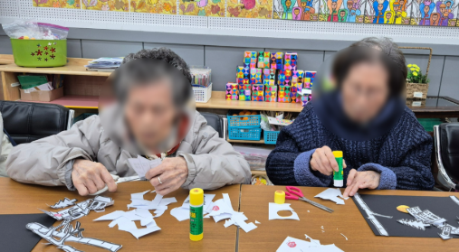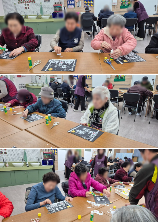 어르신들의 손끝에서 눈송이 하나하나가 쌓여가며 아름다운 겨울밤 풍경이 완성되어 갔어요!