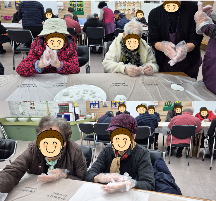 "말랑말랑하네~" "옛날생각나네~" 하시며 어르신들은 정성껏 새알심을 만들어 주셨습니다.