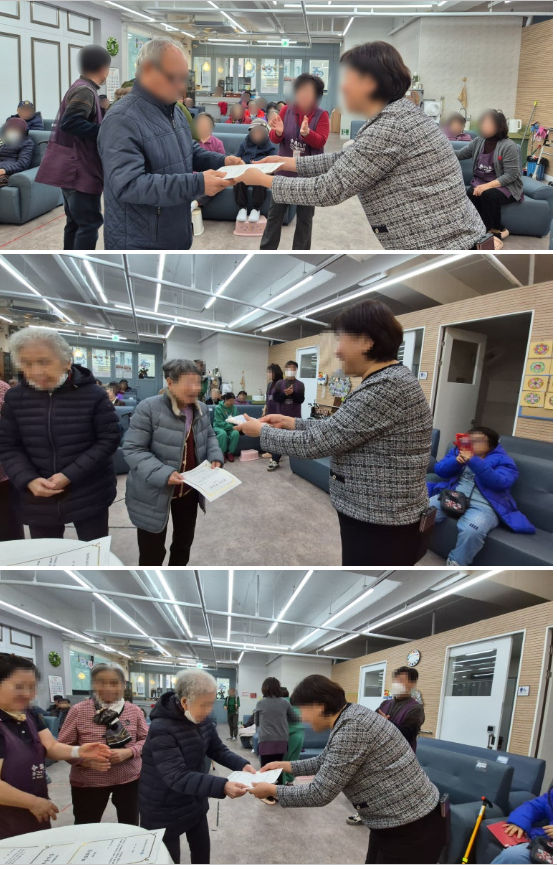 어르신들께서 한 해동안 센터안에서 생활하시면서 좋았던 점들을 특별히 시상을 통해 기념하는 기회도 만들어 보았습니다.